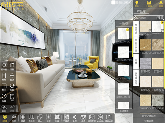配磚寶強大的云分享功能,把您的設計1秒鐘就渲染生成VR空間,3秒就可以上傳到云端,前所未有的體驗只為促進銷售!
